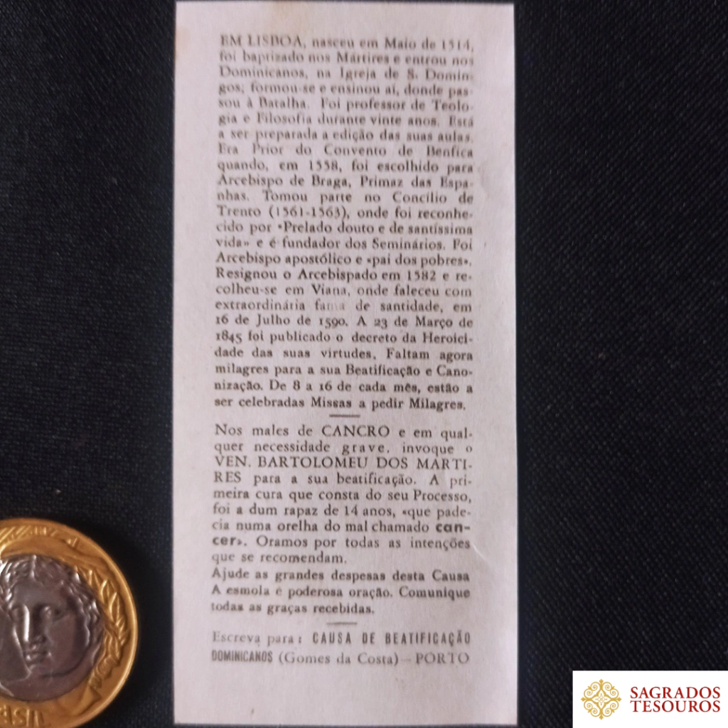 No verso: pequena biografia do [então] Venerável e solicitação de comunicação das graças alcançadas